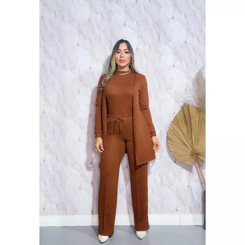 CONJUNTO FEMENINO LANZINHA 3 PEÇAS REGATA, CARDIGA E CALÇA PANTALONA produto da shopee clique em comprar