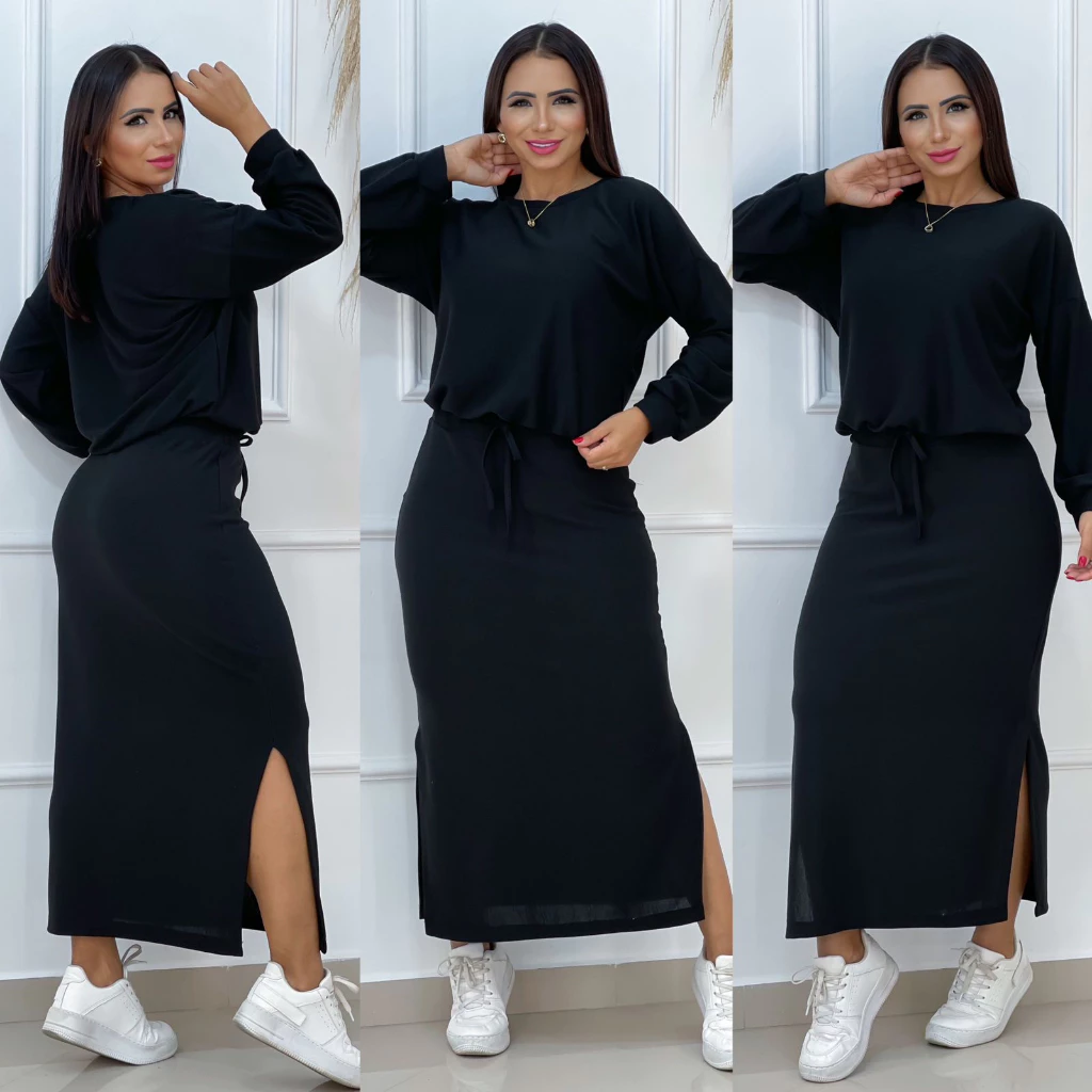Conjunto feminino de inverno blusa cropped e saia midi lã lanzinha produto da shopee clique em comprar