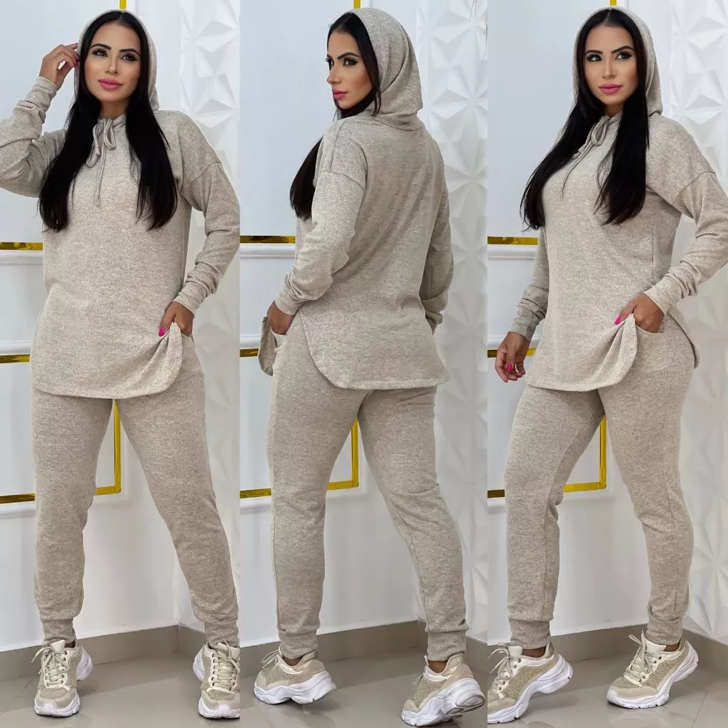 Conjunto Lanzinha mais vendidos casual capuz e cordão bolso moda feminina outono inverno 2025 despojado festa elegante produto shopee